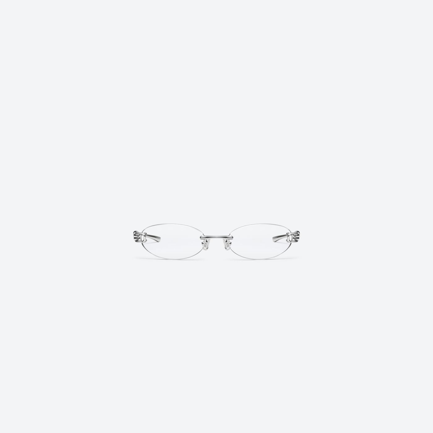 亮银色金属椭圆形眼镜