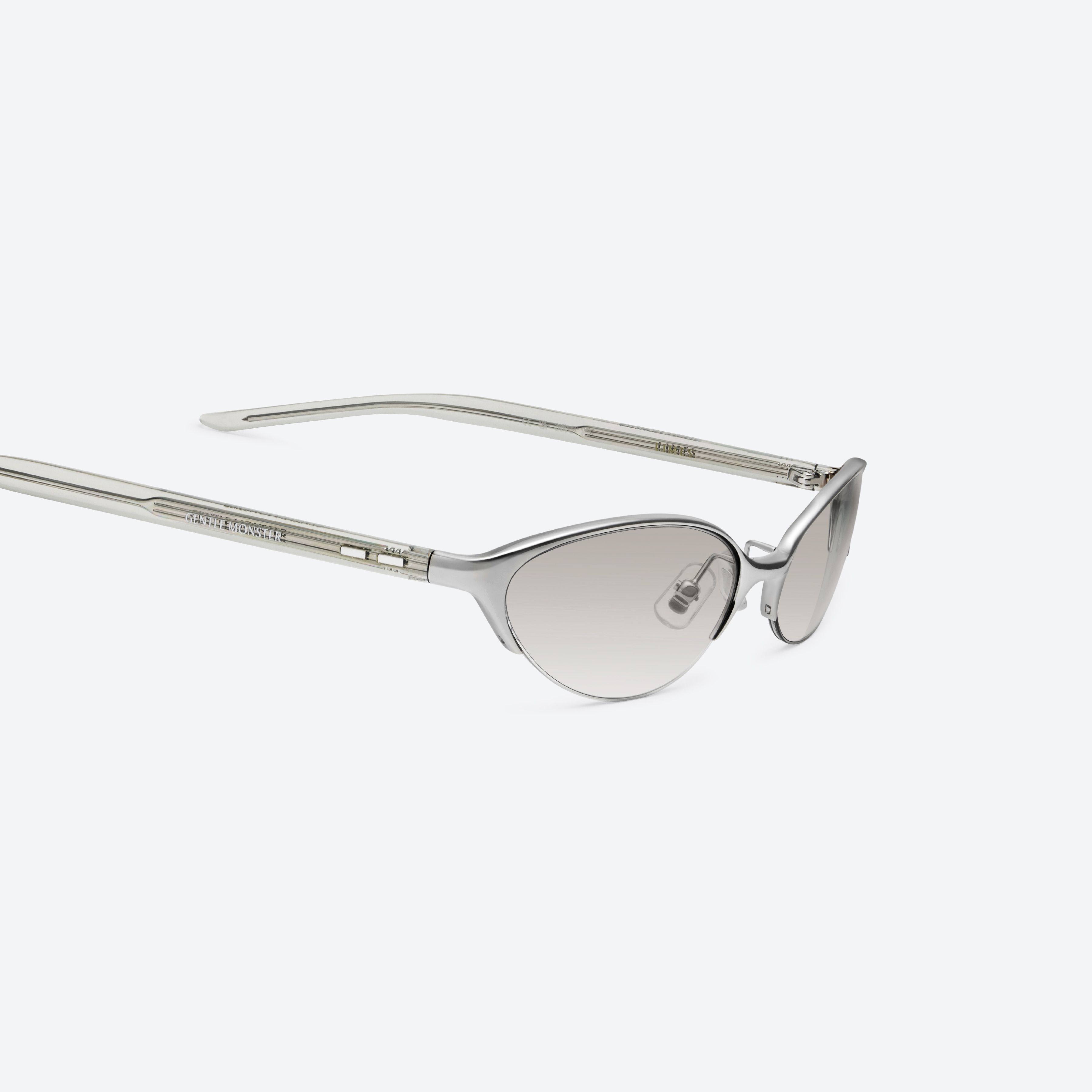 Cat-Eye Sunglasses in Glossy Silver Mixed Materials