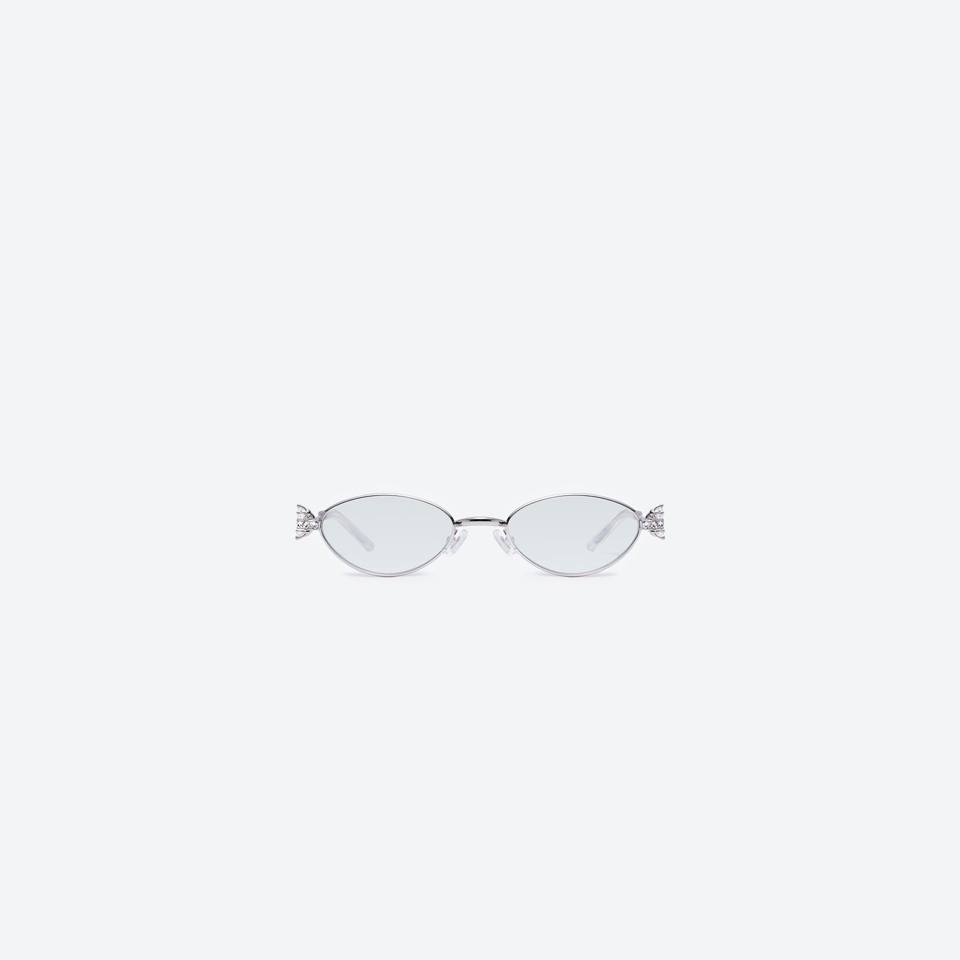Oval Sunglasses in Silver Metal, Reminiscent of Precious Jewelry